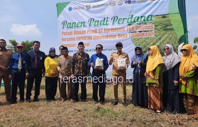 Panen padi perdana ini, merupakan kegiatan Program Studi S1 Agribisnis Fakultas Ekonomi Bisnis(FEB) Unimus Semarang bersama petani binaan khususnya kelompok tani Sido Makmur yang ada di Desa Tambaksari, Kecamatan Rowosari.